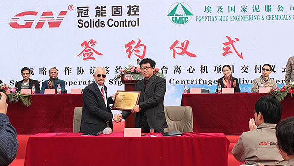 2015年3月12日,冠能固控埃及國家泥服公司在中國北京冠能公司總部簽署戰略合作協議,為此冠能固控舉辦了盛大了簽約儀式,儀式也包括了一大批離心機的成功交付。
